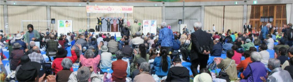 田村委員長は、「私たちの世代では『君が代』を歌ったことはなく、信濃の国』を歌っていました。」と子供時代のエピソードを紹介し、「信濃の国は十州に~」と1番の一節を歌いだし、会場全体も声をそろえて歌い、一体感が広がりました。