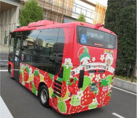 市内を走る循環バスには「日本一のイチゴの街」と描かれていた。