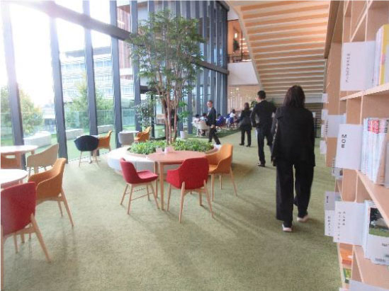館内ならどこでも読書ができて、どこのフロアでも返却ができる。