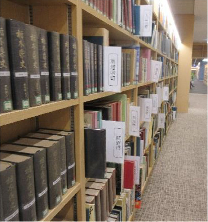 真岡市やその周辺の市町村の行政資料や市出身の作家の本などがそろっていた。