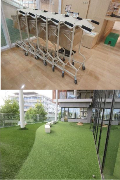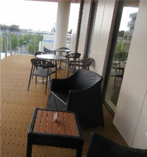 どの階にも、外にはこうしたイス・テーブルがあり、自由にくつろぎながら読書ができる。