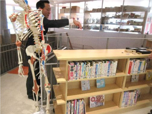 画像は理科のブース、人骨模型や子供たちが集めた昆虫の標本が飾られていた。
