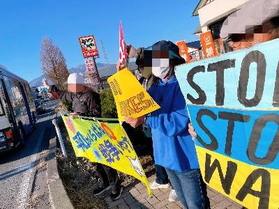佐久地域でも70人「戦争やめよ!」「国連憲章違反だ」at浅間中学前